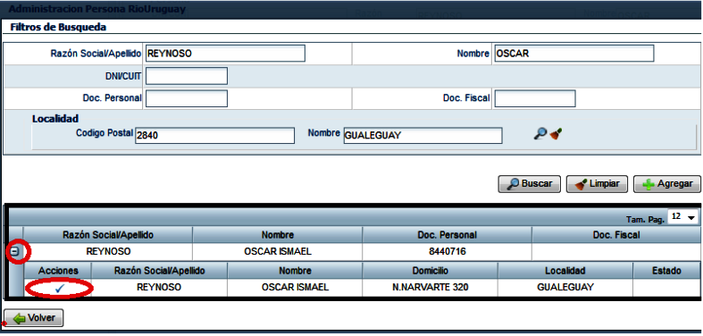 Paso 1: desde: Socios—Administración: indicar el apellido, nombre y buscar
