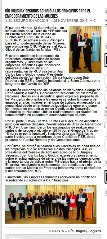 47 02/12/2015 En el newsletter que distribuye El Seguro en Acción (El Seguro en accion [noresponder@contacto-asegurado.com]) se refleja RIO URUGUAY SEGUROS y la firma de su compromiso con el «Empoderamiento de la Mujer». Notas relacionadas06/11/2025Margheritis: “RUS aplica un enfoque de segmentación y customización en el tratamiento de los siniestros de responsabilidad civil”Seguir leyendo03/02/2025RUS auspicia la 1° Maratón de la Mujer en Concepción del UruguaySeguir leyendo07/04/2021Nuevas tecnologías: Sustentabilidad, clave en un nuevo edificio de Entre RíosSeguir leyendo Comments are closed.