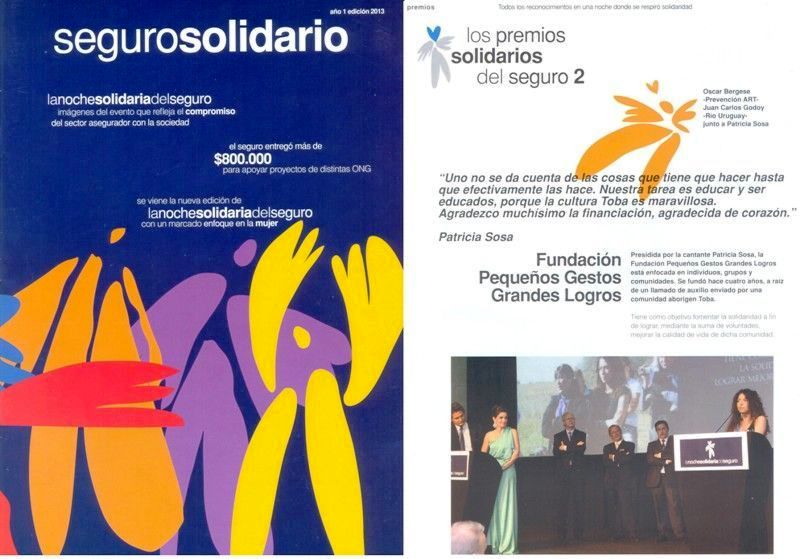 (f) Imágenes de la Revista de la Fundación Patricia Sosa “Pequeños Gestos, Grandes Logros” como reconocimeinto a las empresas de seguros que colaboraron con distintas ONG en el evento “La Noche Solidaria del Seguro”. En las fotos se observa la presencia del Presidente del Consejo de Administración de RIO URUGUAY SEGUROS, Cdor. Juan Carlos Lucio Godoy.