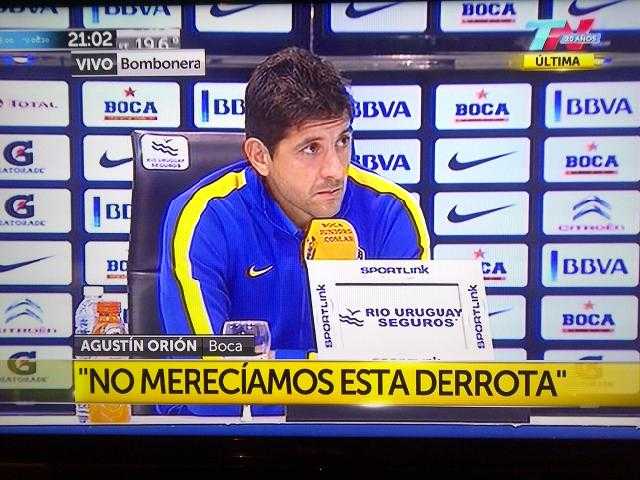 (f) La Marca – Río Uruguay Seguros – presente en la Conferencia de Prensa que dió Carlos Bianchi (DT de Boca Juniors), tras el super clásico disputado en la Bombonera entre Boca y River el domingo 30 de marzo de 2014.