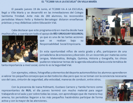 (f) Río Uruguay Seguros apoya el programa educativo sobre Seguridad Vial desde hace muchos años, recorriendo distintas ciudades del país como parte de su Estrategia de RSE.