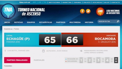 El Tomás de Rocamora venció anoche por 66-65 a Echagüe de Paraná por la tercera fecha del Torneo Nacional de Ascenso. Felipe País de Rocamora fue la figura del juego con 19 puntos.