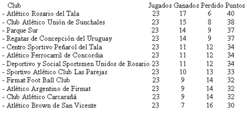 Posiciones Conferencia Litoral del Torneo Federal de Basquetbol