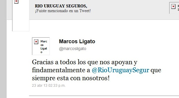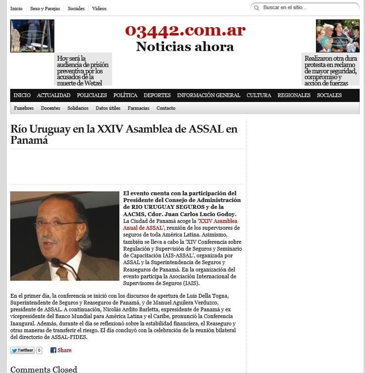 (f) En la edición del portal de noticias 03442.com.ar del día 23/4/13, se incluye una nota específica sobre la participación del Presidente de RIO URUGUAY SEGUROS […]