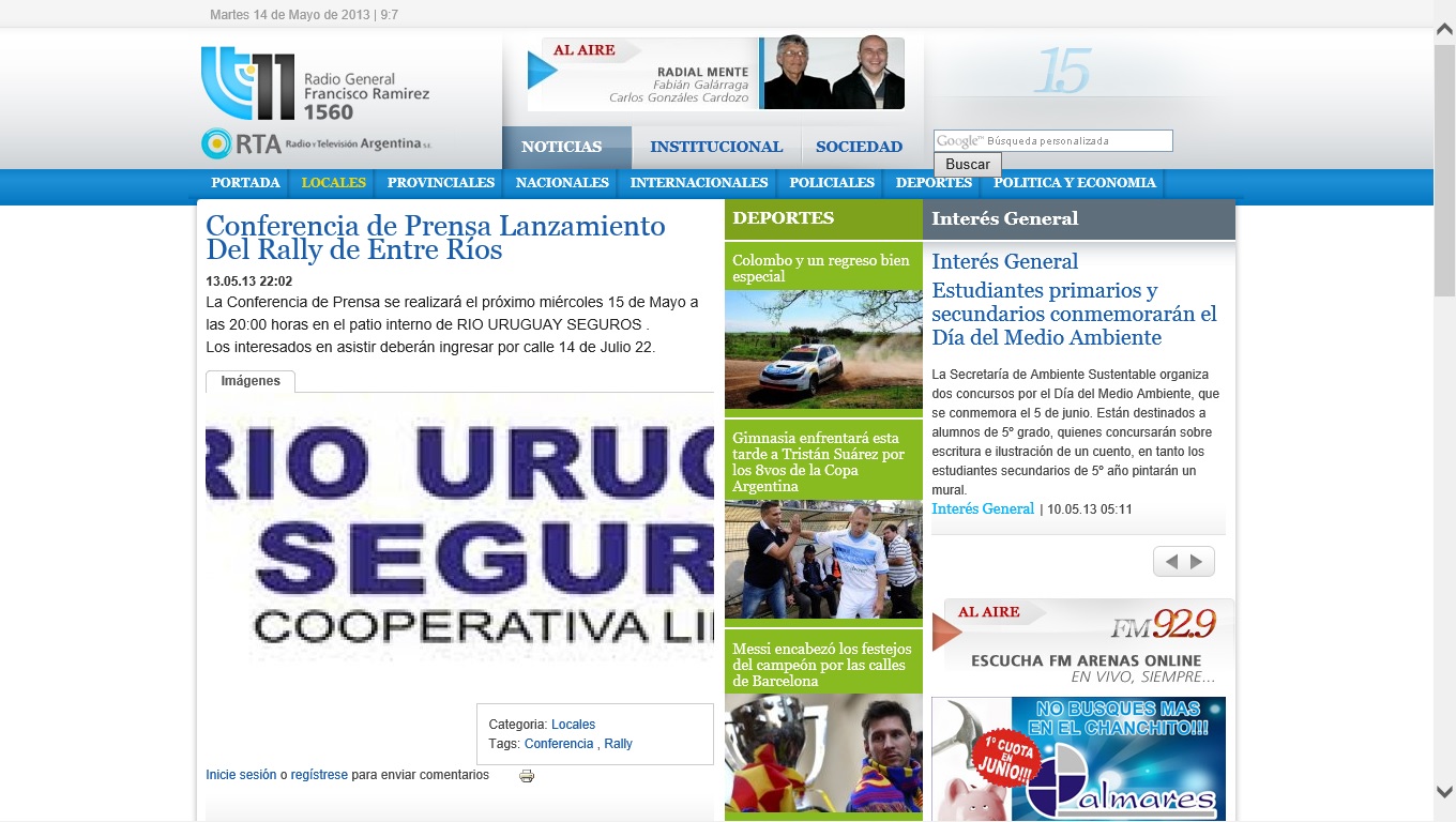 (f) En el portal de noticias de LT11.net, se destaca la realización del Rally Nacional en Concepción del Uruguay, con un logo de RIO URUGUAY SEGUROS. […]