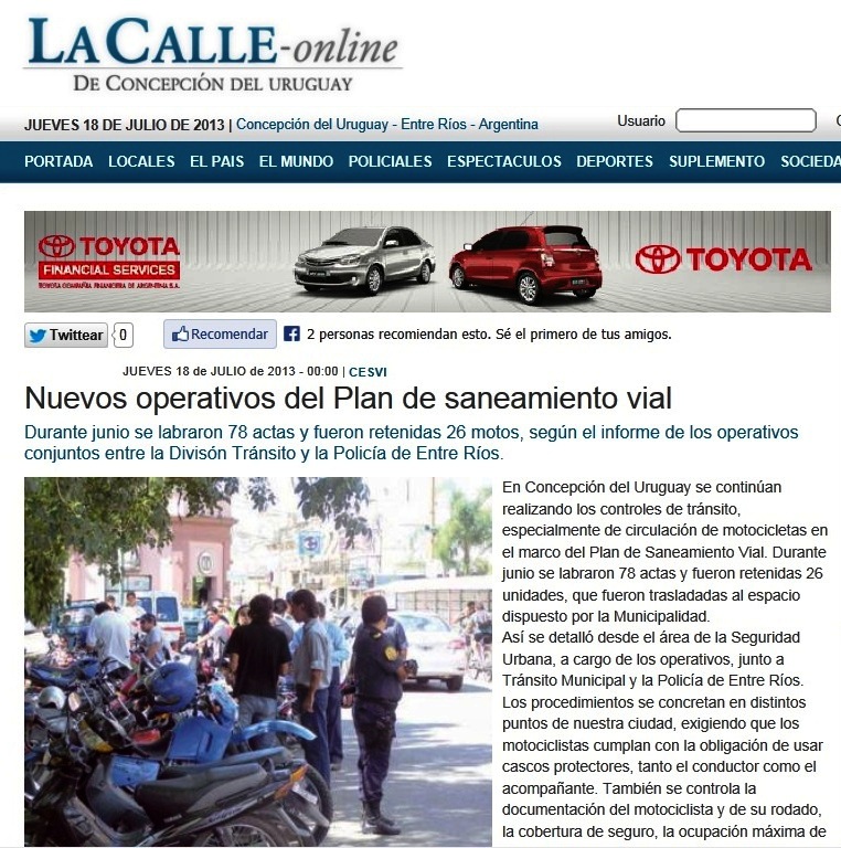 (f) En las ediciones del 18/7/13 tanto del portal de noticias en Internet lacalle-online.com.ar, como en la versión impresa del diario La Calle, se refleja el avance […]