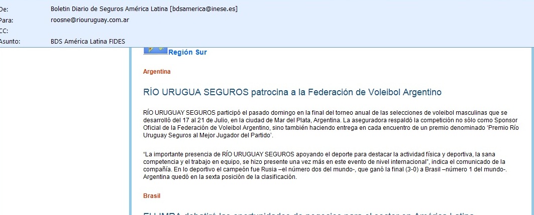 (f) En el Newsletter BDSAL (Boletin Diario de Seguros de America Latina) del día 25/7/13 que distribuye INESE, se incluye información de la Argentina y específicamente […]