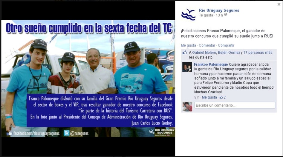 (f) El ganador del concurso realizado en el facebook oficial de RUS en el marco del Gran Premio Río Uruguay Seguros de Turismo Carretera Franco Palomeque, […]