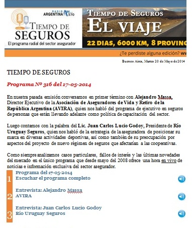 (f) En el Newsletter del programa de radio especializado en los temas del sector asegurador, Tiempo de Seguros, da cuenta de lo sucedido en el mismo […]