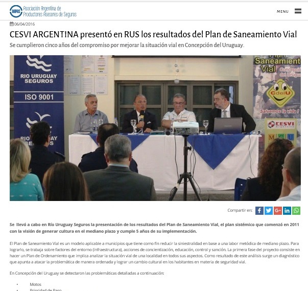 En la página web de AAPAS (Asociación Argentina de Productores Asesores de Seguros) se refleja la conferencia de prensa que se desarrolló en RUS, donde CESVI […]