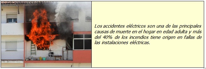 En el marco de la Semana del Seguro y la Prevención, resulta de suma importancia ocuparse de las instalaciones eléctricas, que constituye una de las principales causas de muerte por accidente en el hogar en la edad adulta (para los niños en particular, las muertes por caídas y golpes superan los accidentes por electrocución), así como también la principal causa de incendios en los hogares.
