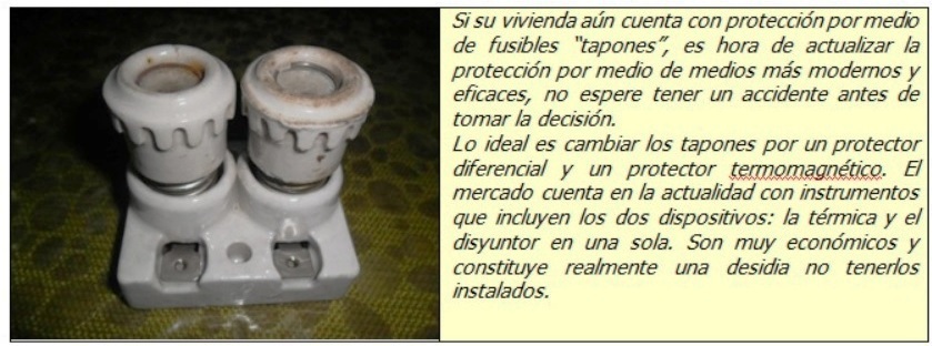 - Instale dispositivos diferenciales y protección termomagnética, reemplace los viejos “tapones”.