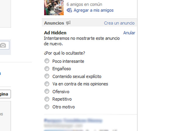 Lo que planea hacer Facebook es agregar entonces una opción para que los usuarios “expliquen” a la red social por qué ocultaron determinados contenidos, incluidos los anuncios publicitarios que se cuelan en el feed de noticias.