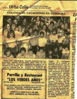 (f) COLONIAS INFANTILES DEL SINDICATO DEL SEGURO. Durante años el Sindicato del Seguro realizaba colonias infantiles para los hijos de los afiliados en las sedes de sus hoteles sociales. Los hijos de los empleados de RUS, participaban alegremente de tales actividades y esta nota del diario La Calle del año 1987 refleja la partida de un contingente que partía frente a nuestra sede sindical. Si se presta atención se podrán ver muchas caras conocidas, de hijos de viejos empleados y hasta de empleados actuales. Un hermoso recuerdo.
