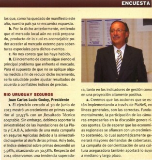 (f) En el número 400 de la Revista Mercado Asegurador correspondiente a diciembre de 2013, se refleja en la página 53 la respuesta del Presidente del Consejo de Administración de Río Uruguay Seguros Cdr. Juan Carlos Lucio Godoy a la encuesta 2013-2014 sobre Balance y Expectativas – Encuesta 36º Aniversario.