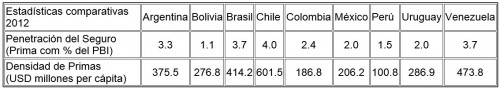 Del informe se desprende que entre los países de la región, Chile se destaca, no sólo por su posición única de calificación de deuda soberana en un nivel de Aa, sino también como el país de la región con la mayor penetración de seguros (4% en 2012, en comparación con un promedio de aproximadamente 3 % en la región, y 7% + en mercados más desarrollados del resto del mundo) y primas per cápita (por encima de USD 600 en 2012, en comparación con un promedio de menos de USD 300 en la región, y más de USD 2,000 para mercados más desarrollados), en gran parte debido a la magnitud y madurez de su sector privado de pensiones, y al sólido marco regulatorio e institucional de ese país.