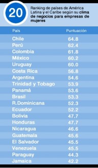 El nuevo índice fue dado a conocer por el Fondo Multilateral de Inversiones (FOMIN), miembro del Grupo del Banco Interamericano de Desarrollo (BID), y desarrollado por The Economist Intelligence Unit llevado a cabo entre los países que proveen los mejores entornos empresariales para las mujeres en América Latina y el Caribe, según ‘The Womens Entrepreneurial Venture Scope.
