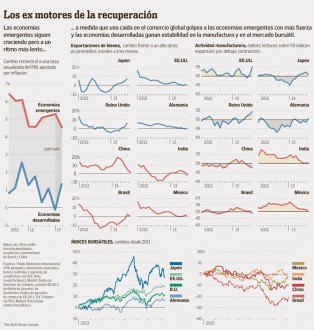 Una señal de que las economías emergentes no se están beneficiando directamente del repunte de Occidente es que los índices de los gerentes de compras de los mercados emergentes, un termómetro del crecimiento del PIB, registraron su menor nivel desde comienzos de 2009, según una estimación agregada compilada por la consultora Capital Economics. Las mismas medidas para EE.UU., Europa y Japón se expandieron.