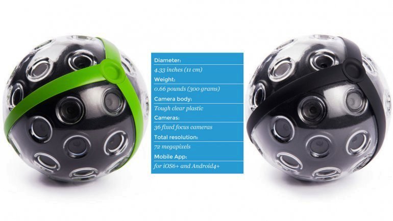 (f) El dispositivo posee 36 minicámaras capaces de ofrecer una imagen de 72 megapíxeles. Su forma le permite captar todo lo que sucede en escena