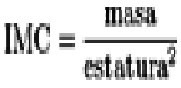(1) El índice de masa corporal (IMC) es una medida de asociación entre el peso y la talla de un individuo ideada por el estadístico belga Adolphe Quetelet, por lo que también se conoce como índice de Quetelet. Se calcula según la expresión matemática: