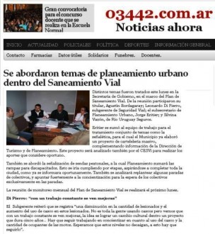 (f) En el portal de noticias virtual 03442.com.ar de Concepción del Uruguay de fecha 30/7/13, se refleja una nota sobre el Plan de Saneamiento Vial que lleva adelante la Municipalidad de Concepción del Uruguay, con el apoyo de CESVI y RIO URUGUAY SEGUROS.