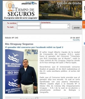 (f) En el Newsletter especializado Tiempo de Seguros [info@tiempodeseguros.com.ar] nro. 245 del 19/4/13 se publica esta nota sobre RIO URUGUAY SEGUROS.
