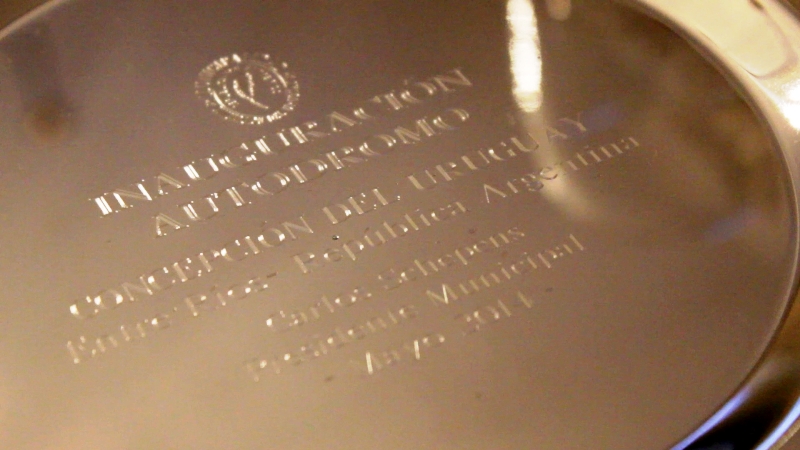 Hugo Mazzacane presidente de ACTC, entregó  a Río Uruguay Segruos un placa en reconocimiento al trabajo que realiza su presidente el Cdr. Juan carlos Lucio Godoy.